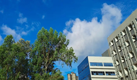 六月榴花如火 陽光明媚,晴空碧勝藍 站在公司樓下隨手一拍,皆是美景