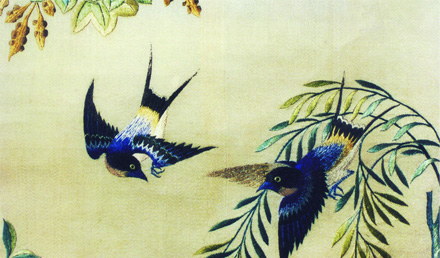 “刺繡,古代稱之為針繡,是用繡針引彩線,將設計的花紋在紡織品上刺繡運針,以繡跡構成花紋圖案的一種工藝。”