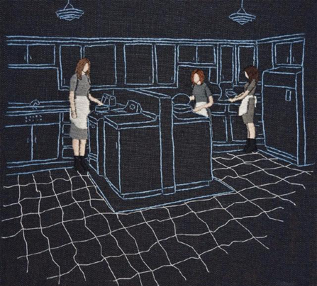 不同的場景,不同的人物;全部都是用刺繡表現出來的;
