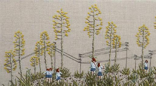 還記得,小時候,和小伙伴一起去探險的時光嗎?看這幅刺繡作品,不就像是那時的我們嗎?