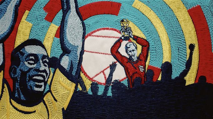這條宣傳片采用了定格動畫的形式,將故事以刺繡圖案在掛毯上鋪展開來。鏡頭里串聯(lián)著世界杯歷史中令人難忘的