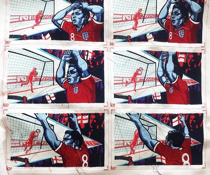 每一幀都對應(yīng)著一片28cm x 19cm大的刺繡作品。創(chuàng)作團隊需要先將插畫畫面輸入刺繡機器,然后再將實際繡好的掛毯