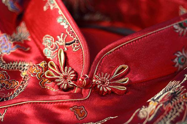 ? ? ? ?又稱盤梗繡或貼線繡,是把各種絲帶、線繩按一定圖案釘繡在服裝或紡織品上的一種刺繡方法。主要運用于