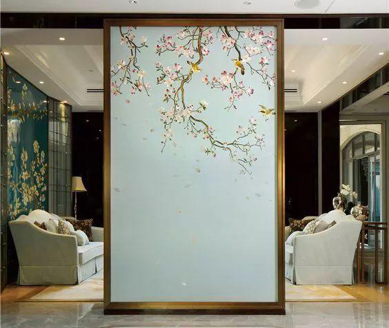 具有隔斷功能的屏風,結合刺繡元素后,極具藝術性,美觀大方。