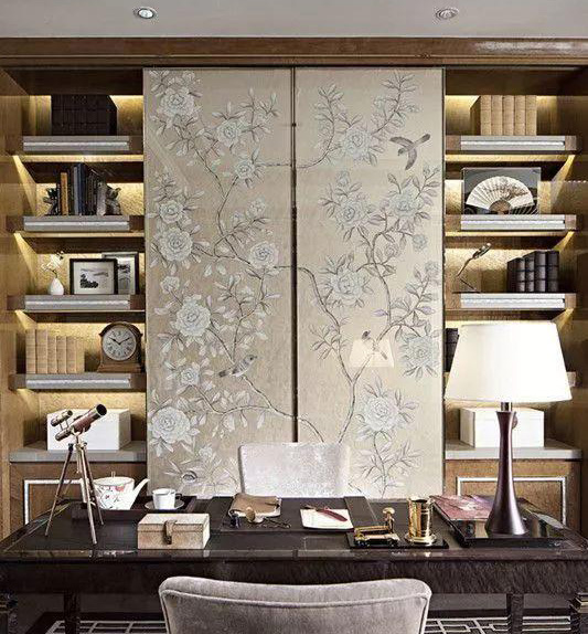 很多設計師常用的手法,我們可以在屏風,背景墻等軟裝的搭配中見到刺繡的身影,不得不說,這樣的設