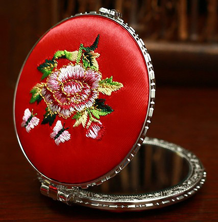 圓形折疊絲線繡花雙面鏡片小鏡子,小巧精致。