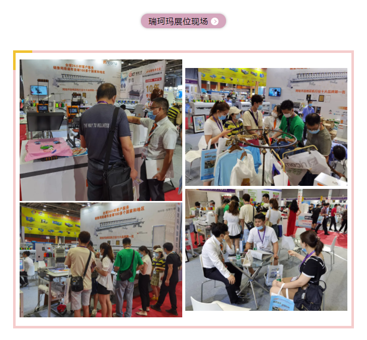 作為國際領先的電腦繡花設備廠商,瑞珂瑪攜旗下繡花機、熱轉印機、白墨打印機等產品亮相展會現場,展位號:T2018A,現場熱鬧非凡,人頭攢動。