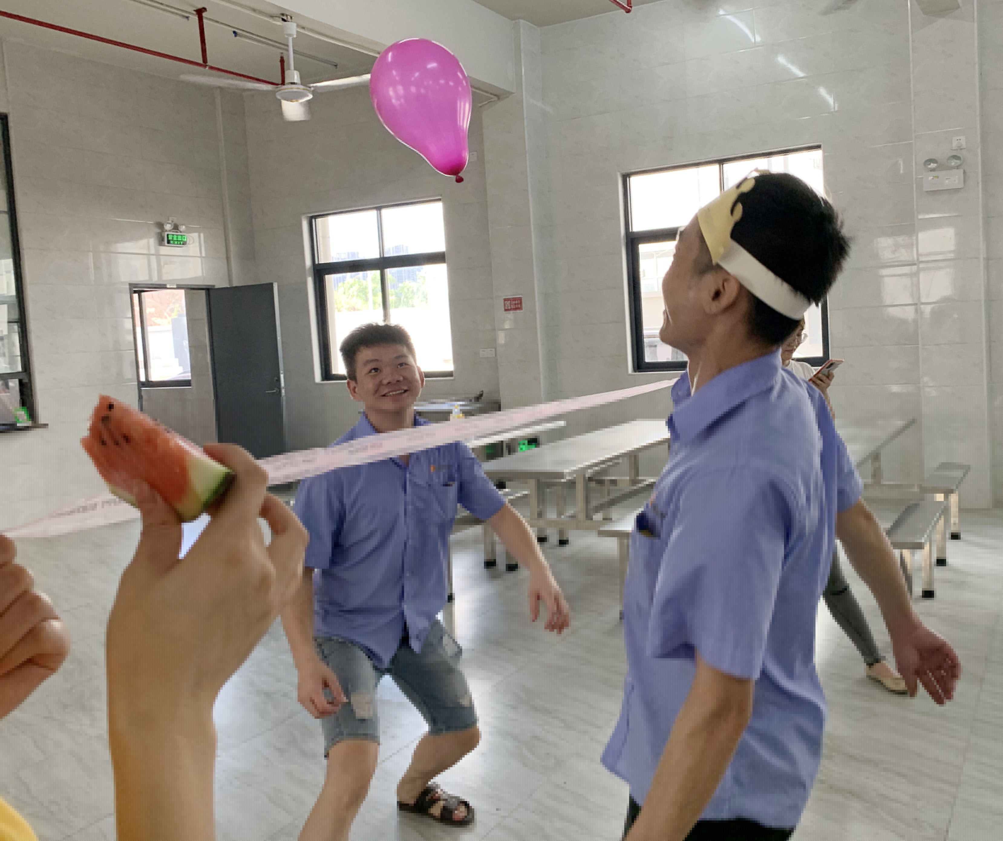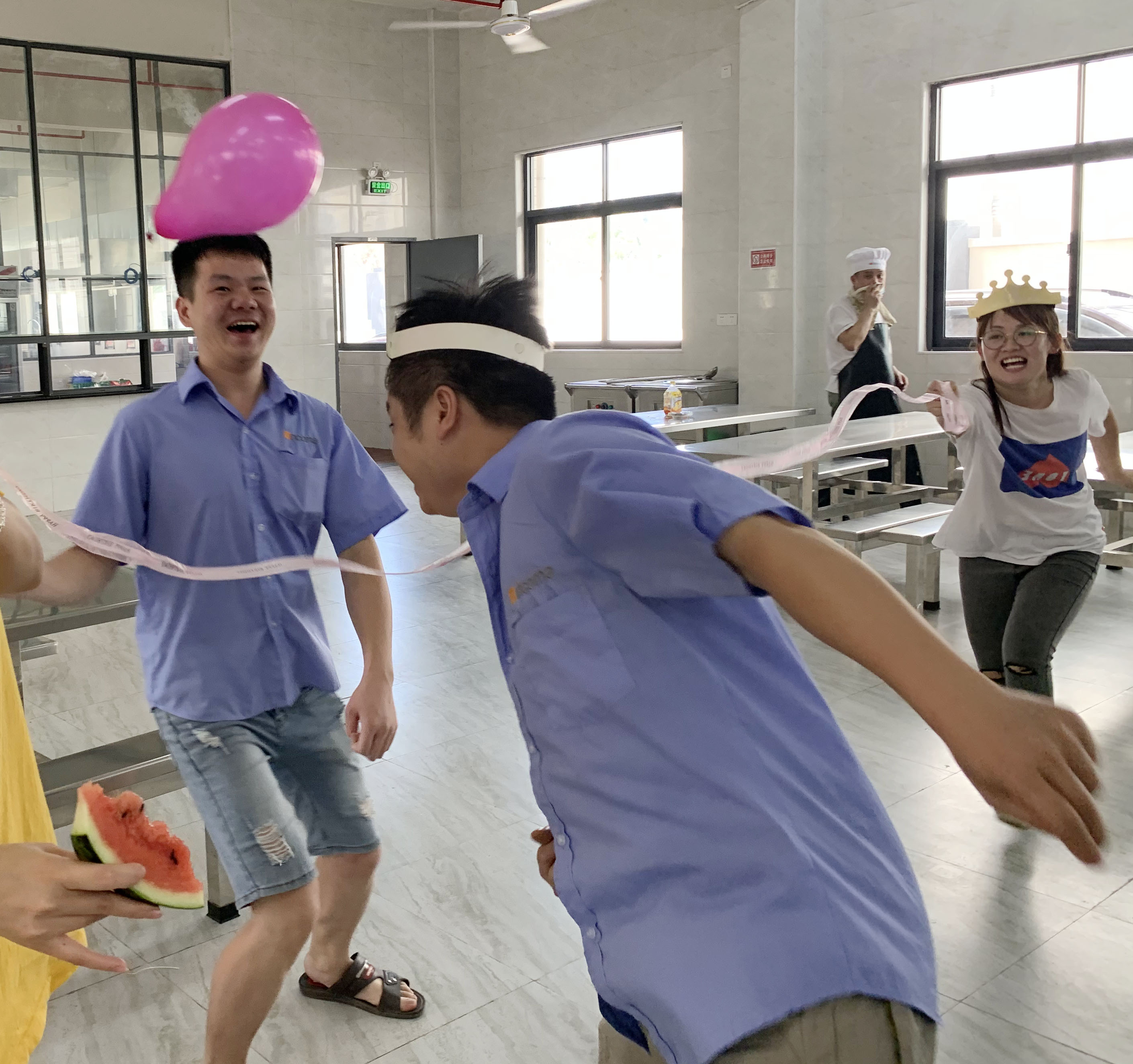 唱生日歌、許愿、吹蠟燭,這滿滿的儀式感總是給人帶來(lái)一種甜蜜感。接下來(lái)的“看圖猜明星”、“筷”遞傳杯、吹氣球游戲讓現(xiàn)場(chǎng)氣氛變得活躍,給忙碌的工作增添了別樣的色彩。