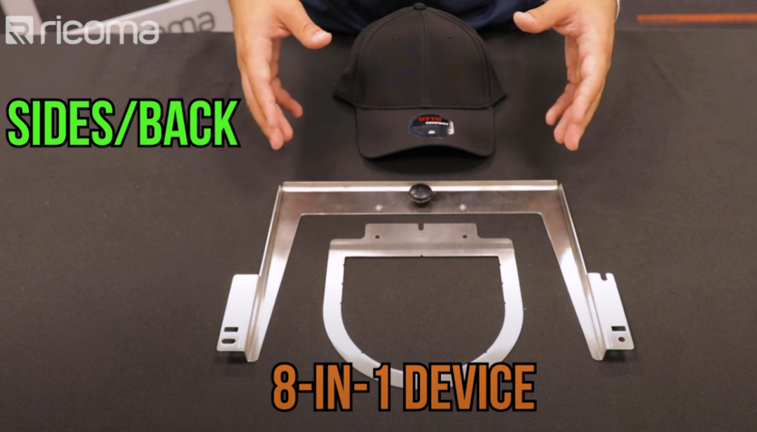 弧形裝置適用于各種類型帽繡,特別是比較厚的帽子。該裝置讓您可以比任何其他帽箍更靠近帽沿進行刺繡,因此可以充分利用帽子正面的所有空間來繡制大面積花樣。但是不能給帽子的兩邊進行刺繡。