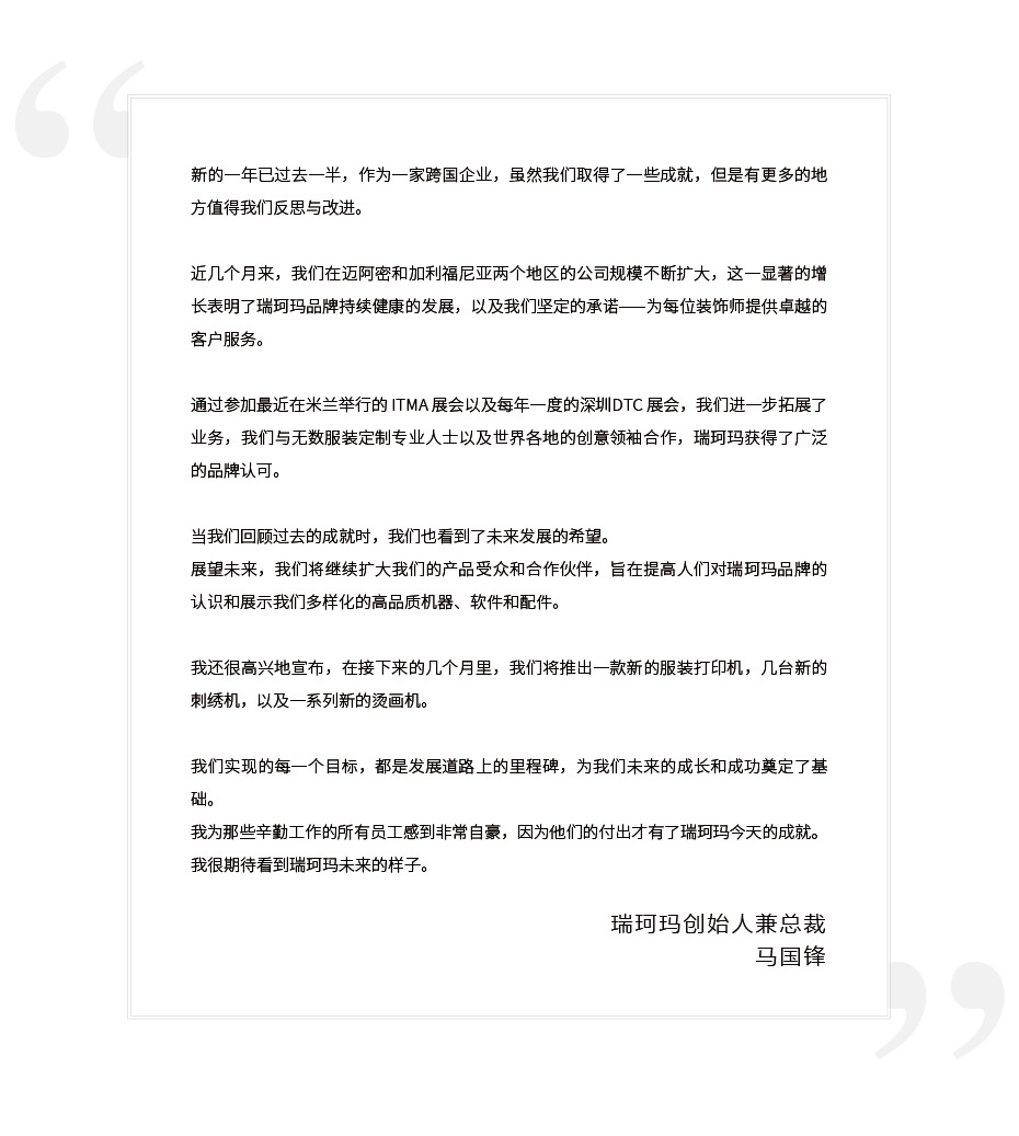 2023 瑞珂瑪創(chuàng)始人對新品發(fā)布的寄語